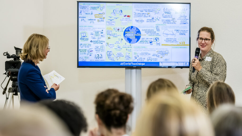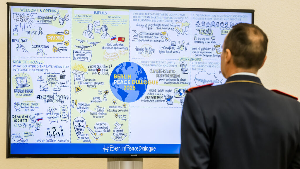 Die Weltlage verschärft sich: Der russische Krieg gegen die Ukraine hat die seit Ende des Kalten Krieges bestehende Friedensordnung zerstört. Weltweit erleben wir eine Abkehr von der regelbasierten Ordnung und gemeinsamer Friedenssicherung hin zum „Recht des Stärkeren“. Wachsender Autoritarismus und Polarisierung bedrohen Multilateralismus, internationale Zusammenarbeit, kollektive Sicherheit sowie Demokratie und Rechtsstaatlichkeit. Zunehmend treten dabei auch hybride Bedrohungen in den Vordergrund – etwa in Form von Desinformationskampagnen, Cyberangriffen, Sabotage oder dem gezielten Untergraben gesellschaftlichen Zusammenhalts. Solche Bedrohungen kombinieren staatliche und nichtstaatliche Akteure, militärische und nichtmilitärische Mittel und wirken grenzüberschreitend. Sie zielen auf die Destabilisierung demokratischer Gesellschaftlichen, erschweren internationale Konfliktlösungen und beeinträchtigen die Fähigkeit zur zivilen Krisenprävention und Friedensförderung.